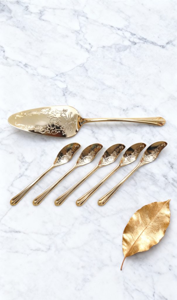 This set of golden tableware is like an elf coming out of an art palace. The large cake server has delicate patterns on the shovel surface that wind like vines, elegantly holding every piece of delicious food. The small spoons are also engraved with fine lines, and they feel full of texture in the hand. Made of high – quality materials, it has a bright color and is durable. Whether it’s a family dinner to share desserts or distributing food at a party, using it can instantly enhance the sense of ritual and style of dining, making every enjoyment of food a dual feast for both vision and taste