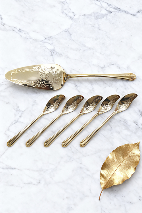 Continue readingThis set of golden tableware is like an elf coming out of an art palace. The large cake server has